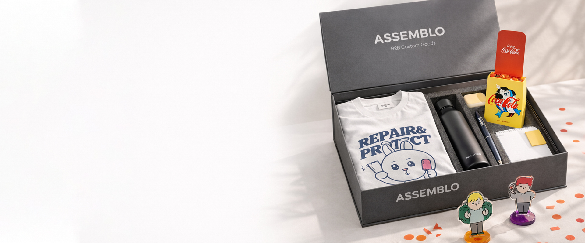 브랜드 성격과 예산, 목적에 맞는 아이템 조합을 제안합니다.